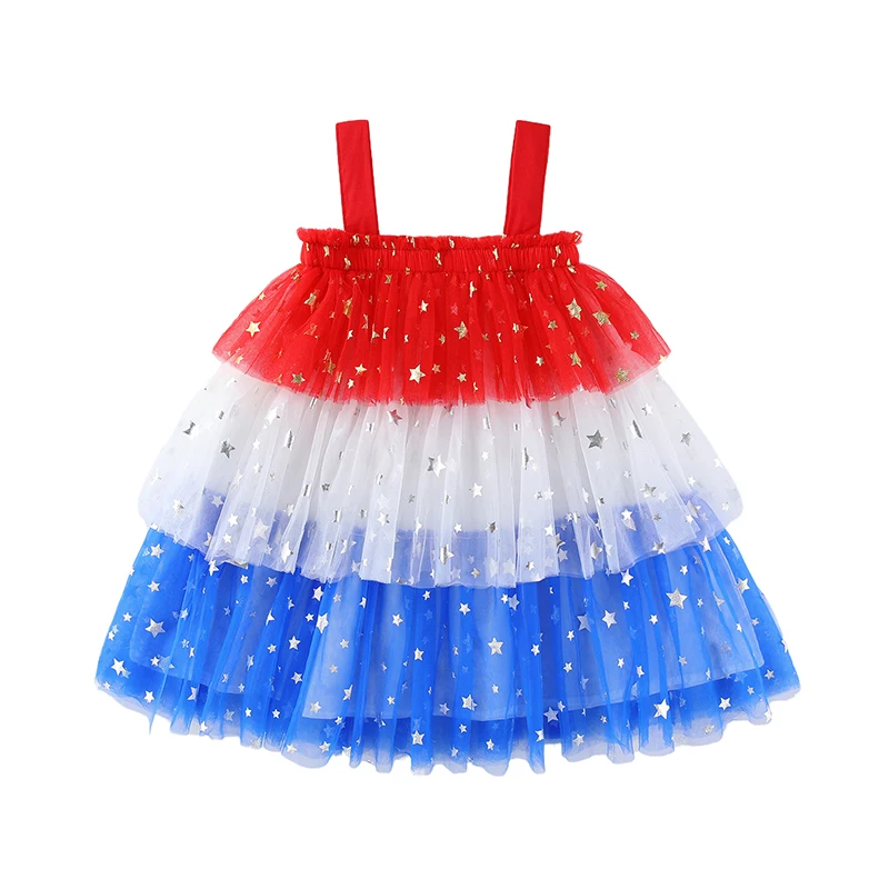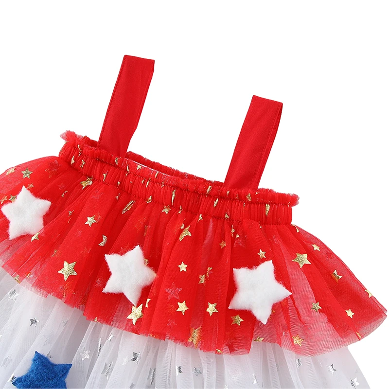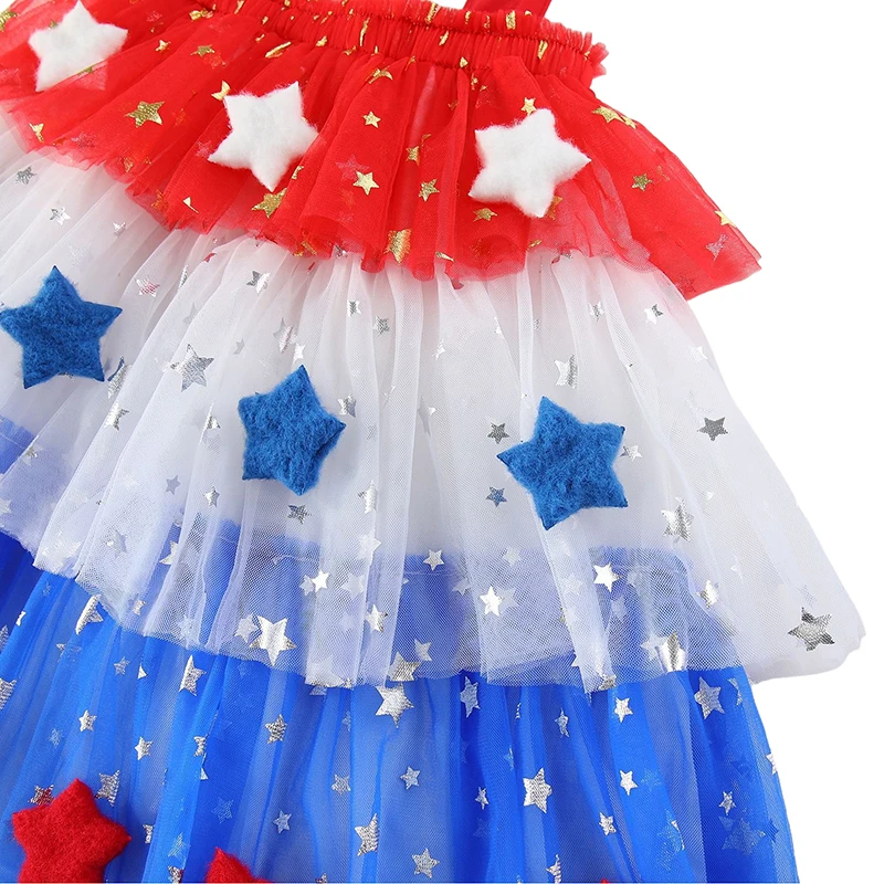 Customizable Summer Girls Patchwork Tutu American Flag Style Gauze Slip Dress